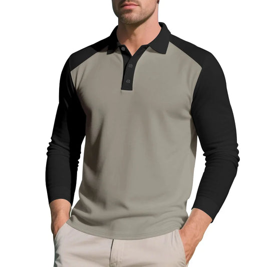 Polo Homme Automne Américain – Coupe Large, Bloc De Couleurs, Manches Longues, Col Avec Boutons, Casual Golf